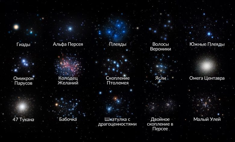 Звездные скопления — это группы звезд, объединенные гравитационно, движущиеся вместе в космосе. Все звезды в скоплении образуются из одного и того же межзвездного облака, что делает их состав и возраст однородными. Звездные скопления бывают двух типов: открытые и шаровые.